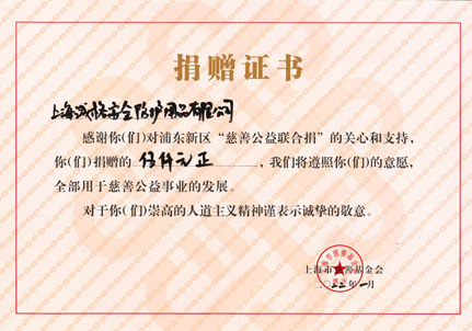 捐贈證書-上海市慈善(shàn)基金(jīn)會浦東
