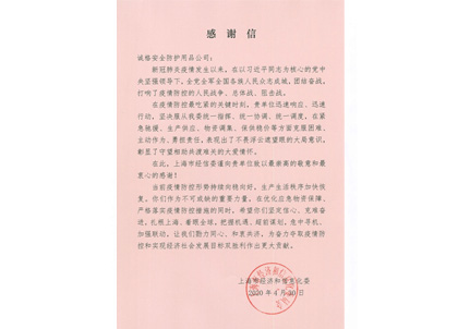上海經信委感(gǎn)謝信