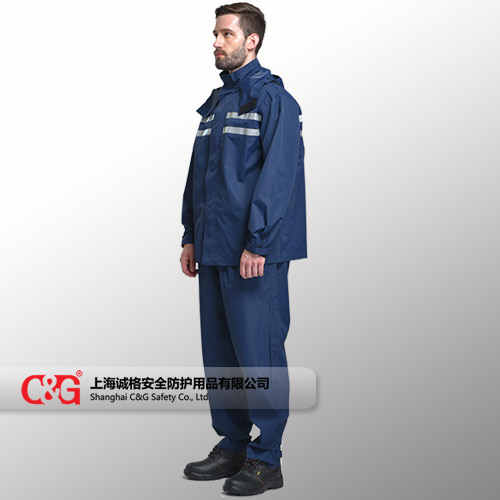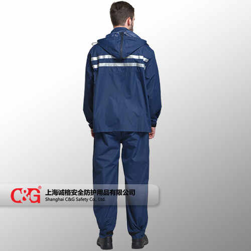 材質為防水塗層麵料,接縫壓膠,可防大(dà)雨;    帽沿、袖口、褲腿有可調節魔術貼,有(yǒu)效防止(zhǐ)雨水進(jìn)入;    前胸、後背高亮反光條,增加可視性。