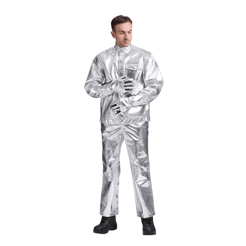 | 4HK高溫隔熱套裝(zhuāng) | MirPro-Kit-515 | 5518127 | 隔(gé)熱服麵(miàn)料為三層複(fù)合覆鋁Kevlar材料,克重510g/㎡,最(zuì)高可(kě)耐受EN ISO 9185測試(shì)的350g熔化鋁噴濺(EN ISO 11612 D3最高(gāo)級(jí))200g熔化(huà)鐵噴濺(EN ISO 11612 E3最高級),最高可耐受1600℃輻射熱,鍍(dù)鋁材質與基材不易剝離,更(gèng)加耐磨,耐用(yòng),可(kě)應用於鋼廠、鋁廠等各種高溫(wēn)工業環境,通過EN ISO 11612-2008防護服-耐熱和防火服裝(zhuāng)標準測試(shì)方法。 |