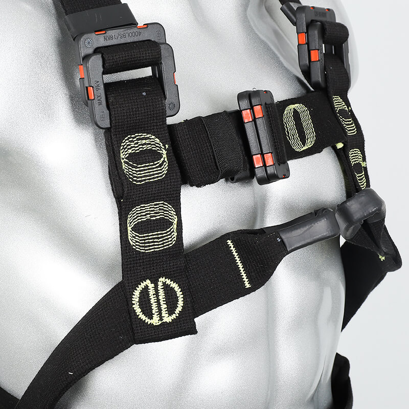 1、4個掛(guà)點:後(hòu)背1個,胸前1個,腰部2個, 2、5個(gè)調節點:腹,胸,肩 3、織帶材質:芳綸+合成纖維 4、五金件:合金鋼+絕緣複合層 5、調節扣:口日字 6、帶護腰 7、標準:GB6095-2021 8、適用:區域限製、圍杆作業、墜落懸掛