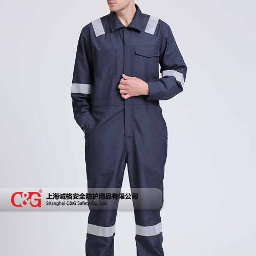 Nomex藏青色連體服采用杜邦Nomex高級阻燃棉麵料生產,吸濕排汗、透氣性好、適合(hé)夏季穿用,杜邦Nomex麵料本質阻燃,耐高溫、熱(rè)防護性能突(tū)出,同時具有優異(yì)的耐磨性、抗靜電、經久耐用。
